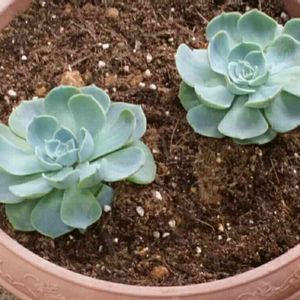 多肉植物を増やそう🌱🌱🌱 下の写真は少し前から放置していたもの。多肉ちゃんが芽を出してきました。上の写真は今夜並べてみました。芽が出て沢山増えますように💕