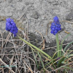 「ムスカリ」 駐車場の隅に ふたつのムスカリを見つけました😊 🏷️(祝)チーム・ブルー2周年 🏷️青い花とその葉も写そう!2022