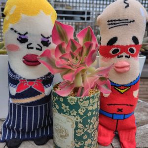 🏷️ソクモン祭り いちごみるくさんから頂いた ソックスドールに名前をつけました✨️ みゆきとしんごです✨️ 何を参考にした名前かわかるかな???🤣🤣🤣 こないだ多肉植物食堂さんから狩った #ピンクウィッチ 裏から見ると…… 二枚目 下葉チョンパして、成長点と子株全振りしました🫡 早く根っこ出てこないかな?🤔