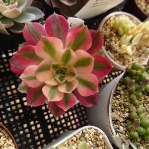 アエオの保険株を作ろう!と思い立って 子株をカット✂️して(場所問題があるので)纏めて植えました! :(っ'ヮ'c):寒い… もう少し早くやっておくべきでした(ノ∀`)💦 上手く発根しますように(*>人<) ✤黒法師錦 夏に1株☆にしてしまいました😭 もう1株の多頭の子から1本カット…小さい💧 ✤ロスコフ ✤ロスコフ錦=青花瓷=紅富士 夏にチリチリになりかけましたが、なんとか耐えたようです😅 ✤キリアツム 気根が出ていたのでカットしました ✤Pink Witch(ピンク ウイッチ)・ピンクの魔女= Blushing Beauty錦 春にカット苗を迎えたのですが、これまたなかなか発根しないまま😓なんとか夏越し💦 最近根付いたみたいです😅 にしても白いな……I˙꒳˙) ⬅️【親株】子株がある為に斜めに植えてましたが、これで真っ直ぐになるかな? ⬇️過去picあります 🏷kyu.〜