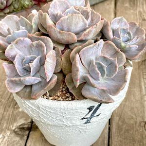 センペルビウム 🪴ビックスリッパー♥️ 3年前に作った寄植え丼♪ 真夏になっても色は🩷撮ってもキレイ🤭 成長記録タグ🏷️みゆのビックスリッパー❤️