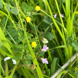 かすま草 マメ科 ソラマメ属 花の長さ 約5mm 在来種 蔓性の2年草 和名はカラスノエンドウとスズメノエンドウの間の大きさであることから。 花はふつう二個ペアで咲くことが多い 巻きひげ一本ずつで枝分かれしない