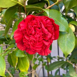 椿 紅唐子💖 唐子咲きは花芯の雄蕊全体あるいは葯(花粉の入った袋)が小さな花弁に変形した椿のことで「紅唐子」は朱紅色の花弁が同色の花芯を抱えるように咲き関西では別名「日光」(じっこう)と呼ばれています🔍 🏷真っ赤な火曜日 🏷あっ火曜日 参加させて下さいね💕