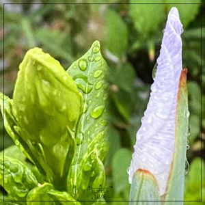 昨日のpic 雨に濡れた クチナシと菖蒲の蕾