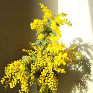 おはようございます😊✨。 ミモザと小型で黄色水仙を 切り花にして部屋に飾りました。 朝日が当たって金色に💛 部屋に春が飛び込んできた みたいです(^-^)💖。 今日も素敵な1日に なりますように✨✨✨✨💖。