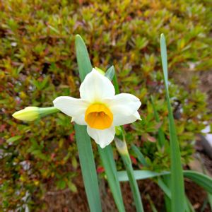 本日のお花、スイセンです。 今年はまだ咲いていないので、去年のpicです。 庭にも毎年咲きますが、あまり増えると野菜を作る場所がなくなるので、セーブしています😊やっぱり、花より団子です。😁