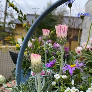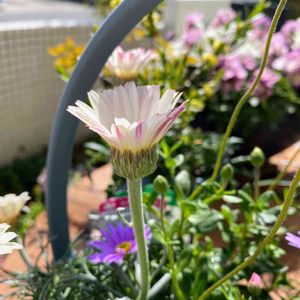 玄関前の寄せ植え 淡いピンクがかわいいローダンセマム「クレールアルバ」💕 あとどのくらい咲いてくれるんだろうか❓