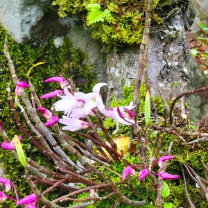 セッコク(石斛) セッコクの花言葉には、「わがままな美人」「潔癖」「天性の華を持つ」「私を元気づける」などがあります。 これらの花言葉は、セッコクが持つ美しい外観や、その成長過程、特徴からインスパイアされています。 セッコクは、東北地方南部以南の山地や岩場に見られる小型の着生ランです。 デンドロビウムの仲間で、主に針葉樹林や常緑広葉樹林に見られます。 節のある細い棒のようなバルブを何本も束ね、細い根でしっかりと木や岩に着生し、晩春から初夏に白や淡い桃色の花を咲かせます。