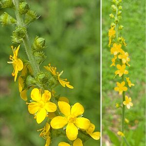 このこ💕は、フライング? 散策道脇に沢山あるなかで一株だけ満開でした。✨ 🥀キンミズヒキ バラ科キンミズヒキ属 果実は、ひっつき虫😅