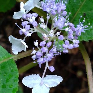 山の中の散策道 あれっ? この子の装飾花の花弁3枚! でも可愛い!💕 🥀 タマアジサイ(玉紫陽花) アジサイ科 アジサイ属 花期 8〜9月