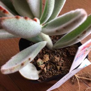 こんにちは✨ 150円の星兎耳さん。 買った帰りに車の中で転がった〜〜😱😭 鉢から飛び出してるわ、葉が取れるわ💨 そんなついで⁇に雪とのコラボ写真📷 ゴメンね、寒かっただろ〜〜に😅 お家に入って早速植え直しました〜(土にね)😊