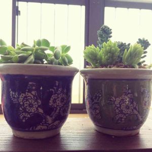 色違いで2つあった鉢... たぶん母のモノだろうけど、こっそり頂いて早速植え替え〜〜💨