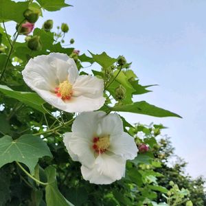 「今日のお花」 フヨウ 早朝の清々しい空気 真夏の花が 少し違った表情に 見えた