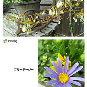 ビルベリーを撮ったらベンチの上の寄せ植えのブルーデージーが咲いてるのを発見 アップにしてみました