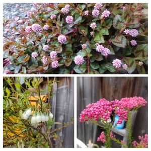 ポリゴナムの上で鉢植えのビルベリーの小さなお花も咲いてます