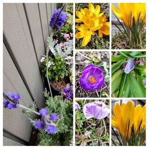 久しぶりの☀️です 開いてきたクロッカス3点 白も欲しいけど🔹⚪🔹🟡🔹🟣🔹 レースラベンダーと