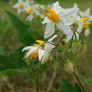 ワルナスビ(悪茄子) ナス科 ナス属 5~8月 20~90cm 帰化種 多年草 根茎を長く伸ばして広がる ⚠有毒植物⚠ 全草にソラニンなどの毒性アルカロイドを含み、特に果実に高濃度で含まれる (ソラニン∶ジャガイモの芽に含まれるやつ) 葉は互生 長さ8~15cm、幅4~8cmの長楕円形で、縁には波状の大きな鋸歯が3~4個ある 葉柄1~3cm 茎や葉の両面に星状毛がある✧ また茎や葉の主脈上には鋭い刺がある 花径2~3cm 茎の途中からでる太い枝の先に6~10個、集散状につく 花冠は淡紫色または白色で、先が浅く5裂して星形~五角形を呈する 雄しべ5個∶葯の先端に穴があき花粉を散らす (孔開葯) 雌しべ1個∶柱頭緑色 果実(液果)は直径約15mmで黄色く熟す☠️タベルナキケン ――――――――――――――――――――――――――― 花は異型花柱性で、雌しべが葯から突き出る「長花柱花」と、雄しべよりも短くなる「短花柱花」がある 画像1枚目では長花柱花、2枚目では長花柱花と短花柱花(中途半端に短いが…)が同じ花序内に、3枚目では短花柱花が写っていると思う 検索先で見る短花柱花の雌しべは本当に短くて未発達な印象でした 画像内の短い雌しべは、確かに短いけれども、短いだけでそれが何か?とでも言いたげな雰囲気というか(笑) 長花柱花の雌しべと太さはさほど変わらない感じに見えたんですよね 結局のところ-両性花と雄花-くらいの感覚でいいのでしょうか…?🙄 実際、異型花柱性を示す同一個体内において、長花柱花は雌花的(受粉するという意味で)な役割を、短花柱花は雄花的な役割を担っているそうなのです これには特定のハナバチ類が深く関わっていて、ナス属の多くにみられる「振動送粉」と関係しています その特定のハナバチ類がいる環境かどうかが異型花柱性を示すかどうかの鍵となっている可能性があるようです しかも蜜を産出しな…∞№∈&®©¡£÷✡www〜💣️ ※ ワルナスビは自家不和合性ですが、開花後数日以内に他家受粉できなかった場合、自己花粉でも受粉できるようになるのだそうです(遅延自殖) 😴 誤って理解している可能性がありますので、ここまで読まれた方は逆にご注意下さい⚠👋