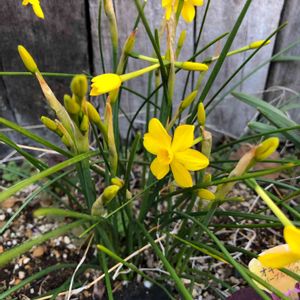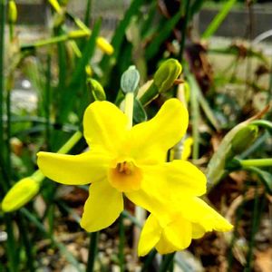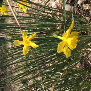 スイセンである事には間違いないんですが、普通のスイセンより葉が細いんです。 なんてやつなんだろう? チューリップみたいにこれも原種系なのかな? 全く分からない。