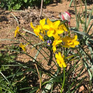 こちらも3月20日頃から咲き始め、かなり咲き終わりましたが、まだ所々咲いています。 キズイセン Narcissus jonquilla ヒガンバナ科スイセン属 イトズイセン、イトバズイセン、ニオイズイセン、ジョンキルスイセンなど色んな呼び名があります。キズイセンによく似た原種スイセンや、キズイセンを母種とした交配種もジョンキルスイセンと呼ばれていることがあります。 ニオイズイセンの名を持つように、非常に香りの強いスイセンで、花の盛期には、庭中がこのスイセンの香りに満たされ、酔いそうです。 スペイン、ポルトガルの地中海沿岸が原産とされていますが、世界各地で栽培され、野生化している増殖力の強いスイセンでもあります。
