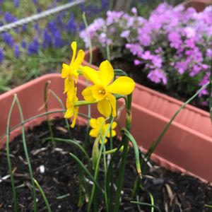 4/15(月)① イトズイセンと黄水仙は同じ花だったんですね🤗🎵 竜の髭みたいな細い葉です。 花は小さくて房咲き。 ジョンキル水仙とも喚ぶらしいです。 江戸末期にイギリス商船で運ばれてきたそうです。 4月半ば過ぎても水仙が見られるとは思ってませんでした。