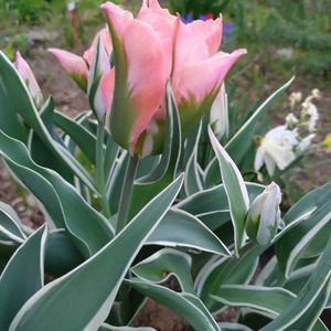 チューリップ・シンフォニー、 咲いてくれました。💗 昨年春に取れた球根、4球根共咲いてくれました。 白とピンクのぼかしで、とても気にいっています。 これで、昨年取れた球根全種類です。 21球根、全部咲きました。🙌🎶 とても嬉しいです。🎵😍🎵 黄色と紫色は、少し雰囲気変わりましたが、咲いてくれてありがとうです。🥰 黄色は、庭に植えきれないので、プランターで育てましたが、咲いてくれました。 後、昨年秋に買った赤を後日投稿します。😉