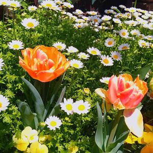 こんにちは☀️今日の花。スノ―フレ―ク(鈴蘭水仙)花壇や、我が家の玄関前に咲いてます。風🍃が出て来ました。 お多福ガ―デンに咲く🌷ミニチュ―リップ🌷我が庭にも咲いてます♥10㌢にも満たない小さな花🌷🌼ですが可愛いです💕背の高いチュ―リップ達はもうめいいっぱい咲き開き、1本ずつ花びらを落としてる今、私の出番とばかり、しっかり咲いてます。藤の花も少しづつ、開き始めました。天気は、ゆっくり下り坂みたいです。