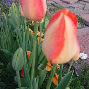 アイスクリームって名前のチューリップ🍦🥄🌷 やっと、咲き始めました😁‼️ にぃさんからの🌷とは、大違いに難しいです😅 球根って、植え付け方にも、差が出るのかな⁉️ 3つ植えたのに、2つしか咲かないって、どういう事かな〜⁉️😕
