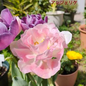 おはようございます☂️ 八重咲きデュオチューリップ🌷 今日の雨でハラハラと 散りました🥀 何日か前の薔薇のような アンジェリケさん💮 キレイに咲いてくれてありがとう🤗