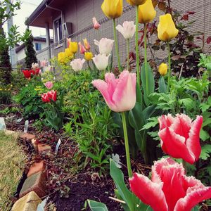 お正月のワゴンセールでチューリップを大人買いして、寒空のなか頑張って植えた努力が報われました😊 春っていいですね~🌷