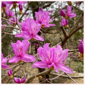 植物園にて♬ ミツバツツジと入れましたがどうやらイワツツジのようです😅訂正します🙇♀️ 今頃咲くお花なんですね〜😍鮮やかな花色がとても目立ってキレイでした✨