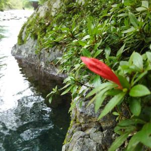 そのブライベートリバーの岩場に真っ赤なツツジの蕾 咲いてない蕾ひとつがとても清らかで、私の興奮ツボに。