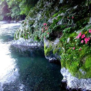 プライベートリバーの岩に咲くツツジは只今見ごろ ただいま~ 今日もありがとう