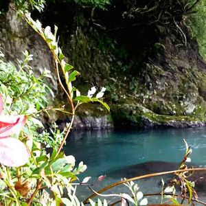 プライベートリバーにて 5月6月に咲き終わりの岩ツツジが一つだけ咲いて