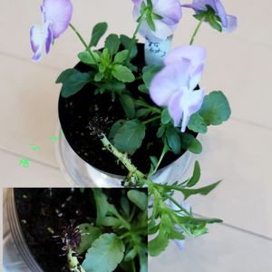 挿し芽のビオラくん 花がらを摘もうとしたら あらっ 抜けちゃった! でも 5mmくらいの発根を確認 出来ました 禍を転じて福と為す 的な ^^)v