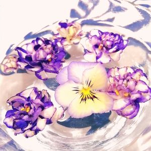 花柄摘みしたお花達を小さな器に浮かべてみました。萎れていた花びらが再び広がり、少しの間また目を愉しませてくれます。