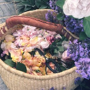 お見苦しい画像ですが(笑) 今日は、晴天で風も穏やか☺。 雨やら風やらにさらされて、花が傷んでいたりしたので、花を楽しみながら、花柄摘みしました。 頑張った‼️ 14Lの培養土の袋に、半分くらい⁉️ 綺麗な花を保つためには、大切な作業☺