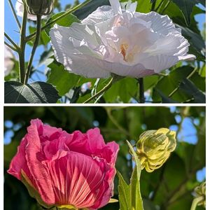 今日のお花 フヨウ 酔芙蓉の様子を見に行ってきました 白く咲くのは朝10時30分♪ 赤く咲くのは夕方5時20分🎶