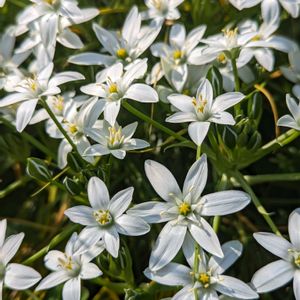 オーニソガラム 和名:オオアマナ キリスト誕生の夜に光り輝いたといわれている「ベツレヘムの星」。この星にたとえられている、清楚な純白の6弁花を咲かせる球根植物です。 雄しべが広がり王冠のように見えるものも👑