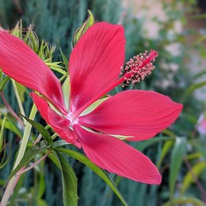 真っ赤なハイビスカス🌺 昨日は涼しくて夕方に散歩してみました🚶♀️ 美容室の前にこんな鮮やかなハイビスカスが❤️🌿