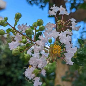 サルスベリ 百日紅だけど白い♡♡♡ 📝2種類の雄しべ 長い雄しべ∶昆虫の体に花粉をつけるため、全ての葯が下向きになっている。 短い雄しべ∶昆虫の餌用。 昆虫が短い雄しべの花粉を集めている間に、長い雄しべの葯に背中をこすり、その花粉を背中につける。同時に雌しべの柱頭に背中の花粉がつくことになる。 受粉が終わると長い雄しべは内側に巻き込まれる。