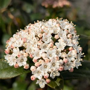 ビバーナムティヌス(常緑ガマズミ)とフリージア タワーマンションの植栽です 先日投稿したシャクナゲやレンギョウも植えられています