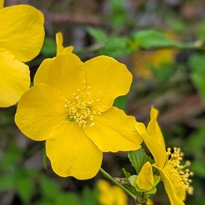 ヤマブキとヤエヤマブキ どちらもかわいい💛🌟 太田道灌が農家で蓑を借りようとすると、娘が蓑の代わりにヤマブキ(八重)の枝を差し出しました しかし道灌は『後拾遺和歌集』(1086年)の「七重八重花は咲けども山吹の実の一つだになきぞ悲しき」(八重のヤマブキは雄しべが花弁に変化し、雌しべも退化したもので、実がならない。「実の=蓑は一つもありません」)の歌を知らなかったため娘に立腹しますが 後にその無知を恥じた…というお話を思い出します