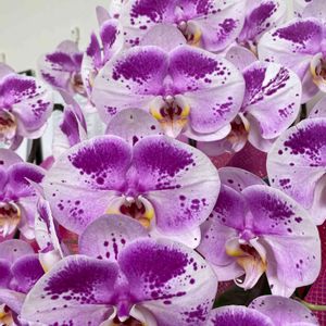 2022年 9月 6日(火) 23時 37分 撮影 昨日の “ お花 “ * 胡蝶蘭 *・・・ (´˘`*) 3月 18日にpicした 会社の胡蝶蘭が.*・゚ .゚・*. また咲いた。・:・(*´ー`*人) 上手に女性スタッフさんが 花後に- - - ✂️チョッキン こんなに沢山の綺麗なお花に お花に無関心だった男性スタッフさんも お花観察しているようです゚・*:.。❁ 男性スタッフさん よく見ると顔に見えてくるね〜 色が段々濃くなっているようだよ〜…と お花トークが楽しい アロちゃんでした꒰⑅ˊ͈ ˙̫ ˋ͈⑅꒱ 夜勤から帰宅前に パシャリ! Σpω・´)♡ ☺︎︎︎︎