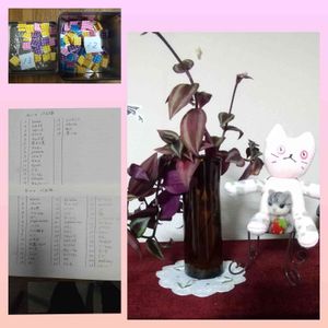 夜中にごめんなさい🙇 🏷ニャンニャン祭りに参加します。 グラン・マさんにいただいたトラディスカンティアとまつぴよさんのソクニャンのピーちゃんとぶりまみさんのニードルネコちゃんです。去年のバラと夢CLUB一斉プレ企画で頂きました。 さて今回のプレ企画当選発表です。64名の応募いただきました。ありがとうございます💕 くじ引き作って、相方に協力してもらいました、 🅰️ 12番 トワさん 🅱️ 13番 ジュンさん に決まりました。 マルちゃんさん、楽しい企画をありがとうございました🙏 みなさま、今後ともどうぞ宜しくお願いします💕