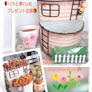 🌹バラと夢 CLUB 3周年 おめでとうございます♪(*ˊ˘ˋ*)。♪:*° 一斉プレ企画🎁✨出遅れましたが 微力ながら参加させて頂きます🤗 直径約18cm高さ約17cmの業務用🥫の二階建てリメ缶と 付属で使えそうな小物♪😁 それと私の鉢コレの中から おひとつ💕 ⬆️こっちがメインか?(≧з≦)プププ こちらをセットでおひとり様に🎁✨ 私のフォロワーの方で 素人作品に理解のある方♪ どぅぞ もらってやって下さい😁 明日3/21の21時までで よろしくお願い致します♪┏○ペコッ 🏷弾かれてましたら 教えて下さいませ(❁ᴗ͈ˬᴗ͈)”peko