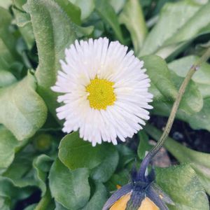 寄せ植えのデージー🌼 寒波の中で開花しました。 まるで白い妖精のようです🤍 天美ちゃんさんの「妖精図鑑」に参加させていただきます🙏