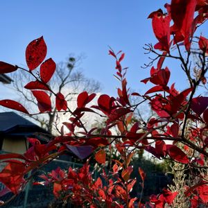 ブルーベリーの葉が鮮やかな赤 になってます お隣さんのですけど😅 🏷妖精図鑑 🏷雲仲間 🏷ちっちゃいものクラブ 🏷お写ん歩