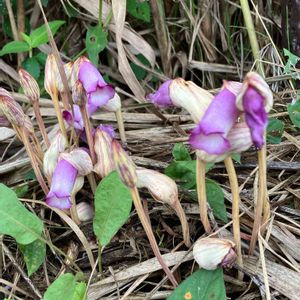 近くに住むF友が「ナンバンギセルが見頃だよ!」と教えてくれたので見に行ってきました。川沿いに100mくらい続くススキの根元のあちこちに。 ちゃんと下草が刈ってあって見やすくなってました。