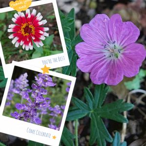 ご近所さんからの百日草🌼 花友さんからのゲラニウム🌸 花好きさんとの繋がりに感謝です🥰 宿根草のブルーサルビア💜二年目です🤗