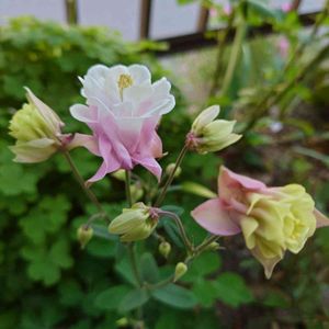 おはようございます😊🌸 今年お迎えしたオダマキのピンク🌸🌸🌸 もう、可愛いったらないの〜😆😆😆 白とピンク仲良く並んで咲いています💗💗💗 ピンクワールドヘようこそ🏷 いつも心に太陽を🏷